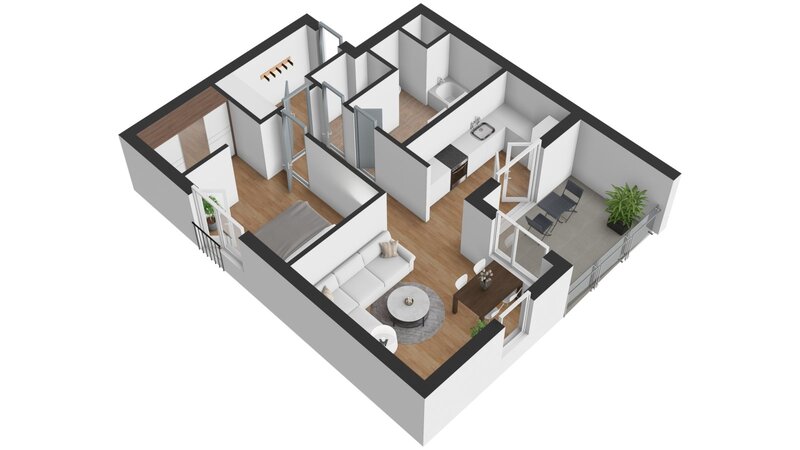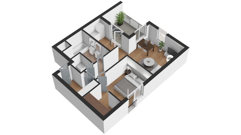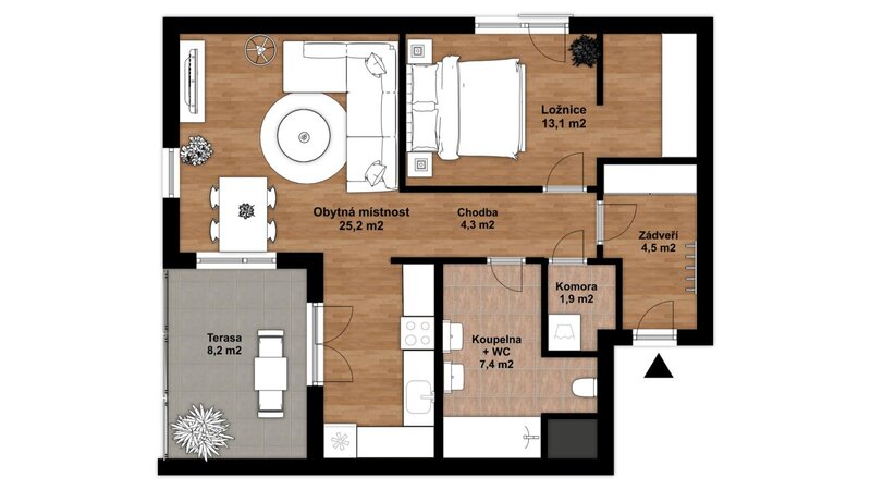 s terasou 8,2 m², situovaný ve 2. nadzemním podlaží novostavby na