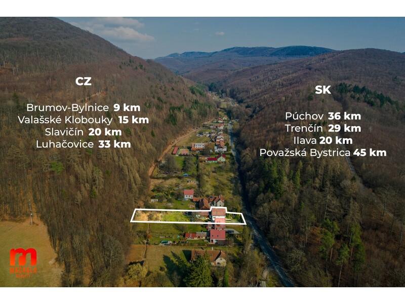 (cca 9 km) a dále pak Valašské Klobouky. Díky poloze na hranici je